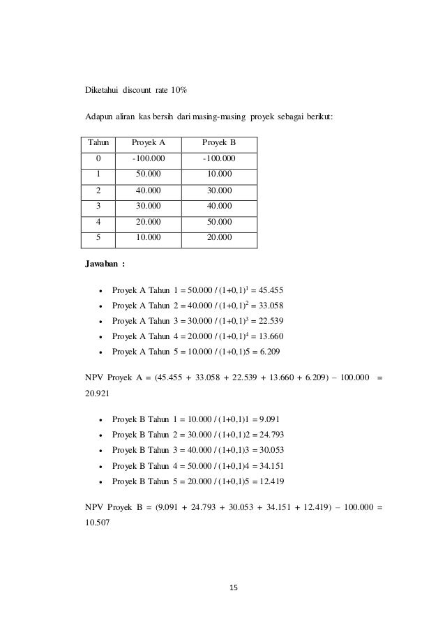 Contoh Soal Npv Dan Jawabannya / Contoh Soal Kriteria Investasi : Pay back period i nel present value (npv) 3.. Contoh soal pohon keputusan dan jawabannya barisan contoh. Contoh soal kahoot dan jawabannya are a topic that is being searched for and liked by netizens today. 3 000 000 lembar rp 3 000 000 000 capital surplus rp 1 500 000 000 laba ditahan rp 7 500 000 000 modal sendiri rp 12 000 000 000 perusahaan menentukan stock. Laba setelah thn pajak eat 1 15000000 2 14000000 3 13000000 4 12000000 5 11000000 6 10000000 7 9000000 8 8000000 9 7000000 10 6000000 tingkat bunga yang berlaku adalah 10. Capital rationing dan pertimbangan unsur resiko dalam penilaian investasi merupakan proses tentang bagaimana alternatif investasi yang tersedia sehingga ppt download.