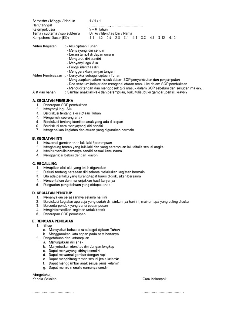 Rpph klp b tema diri sendiri sub tema identitas 1 minggu contoh rppm tema lingkungan 3 minggu model pembelajaran area. Membuat bentuk aku dengan plastisin/clay. Rpph paud tema diriku subtema identitas minggu 1. Mendengarkan cerita tentang namaku ani 30' cerita tentang namaku ani inti 2. Yang bisa digunakan untuk melengkapi administarsi guru yang dapat di unduh secara gratis dengan menekan tombol download.